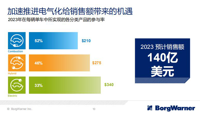 博格華納全球副總裁兼中國(guó)區(qū)總裁談躍生指出,未來混動(dòng)及純電動(dòng)應(yīng)用是其主要增長(zhǎng)點(diǎn)。據(jù)了解,目前博格華納共有渦輪增壓系統(tǒng)、排放與熱能系統(tǒng)、摩斯系統(tǒng)、變速器系統(tǒng)、動(dòng)力驅(qū)動(dòng)系統(tǒng)五大業(yè)務(wù)單元,而每一項(xiàng)業(yè)務(wù)單元除了原有的傳統(tǒng)燃油車業(yè)務(wù)之外,都已經(jīng)拓展了相應(yīng)的混合動(dòng)力車型和純電動(dòng)車型的業(yè)務(wù)。